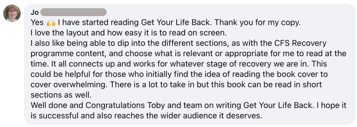 Get Your Life Back is based on the experience and insight we have gained over the last sixteen years, as we’ve helped over 5,500 people in their recovery from M.E/CFSÂ